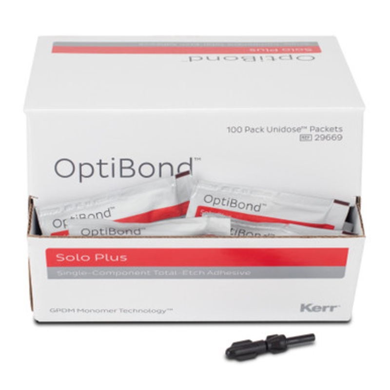 OptiBond Solo Plus is the industry standard-setting, single-component adhesive designed for both direct and indirect bonding applications. 15% filled material penetrates and reinforces dentin tubules to provide a strong, lasting bond with the highest level of microleakage protection. 100 0.10ml unidose pouches per package, 10ml total.