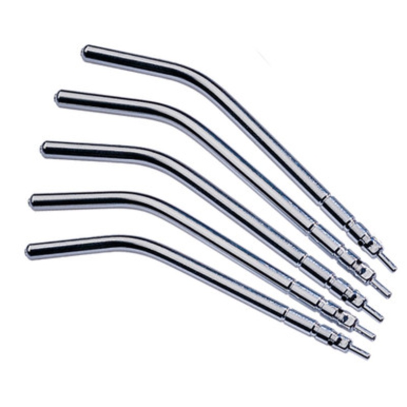 Metal Quick-Change A-W Syringe Tips are interchangeable with all removable-tip air-water syringes. Water and air tubes permanently joined for durability. Smooth chrome finish. Fully sterilizable. Five per pack.